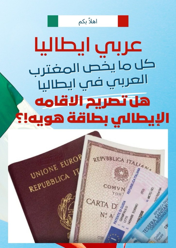 بفكرة ان تصريح الاقامه هو مجرد اثبات انك مقيم شرعي علي الأراضي الايطاليه اكثر منه بطاقه هويه ..
