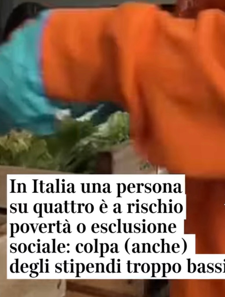 التقرير الصادر عن المعهد الوطني للإحصاء (ISTAT) حول “ظروف المعيشة ودخل الأسر – 2023-2024” يقدّم صورة قاتمة. فعدد الأشخاص المعرضين للفقر أو الإقصاء الاجتماعي ارتفع من 22.8% في 2023 إلى 23.1% في 2024. كما زادت الفجوة في توزيع الدخل، حيث يسجّل جنوب إيطاليا الفارق الأكبر (والمتزايد منذ 2022) بين أصحاب الدخل المرتفع والدخل المنخفض.
